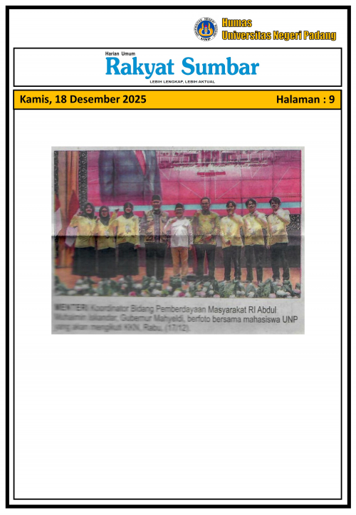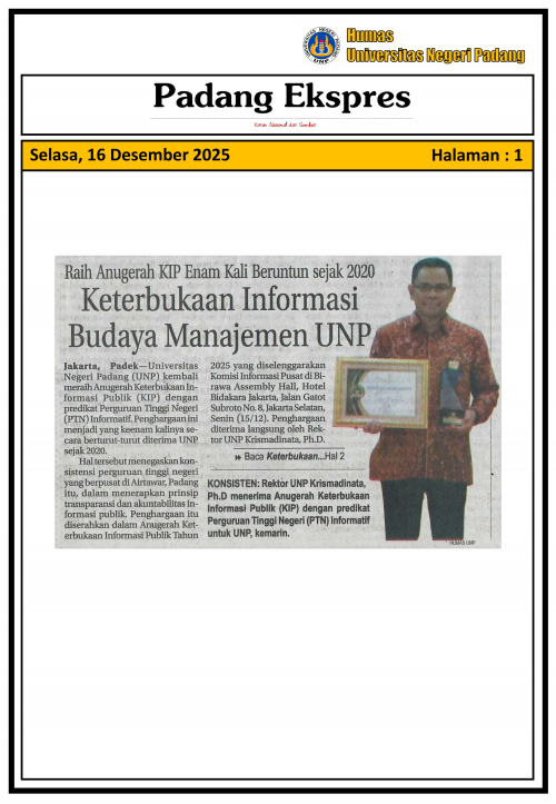 Keterbukaan Informasi Budaya Manajemen UNP (Padek) Selasa, 16 Desember 2025 | 00:00 WIB 2 weeks Albums