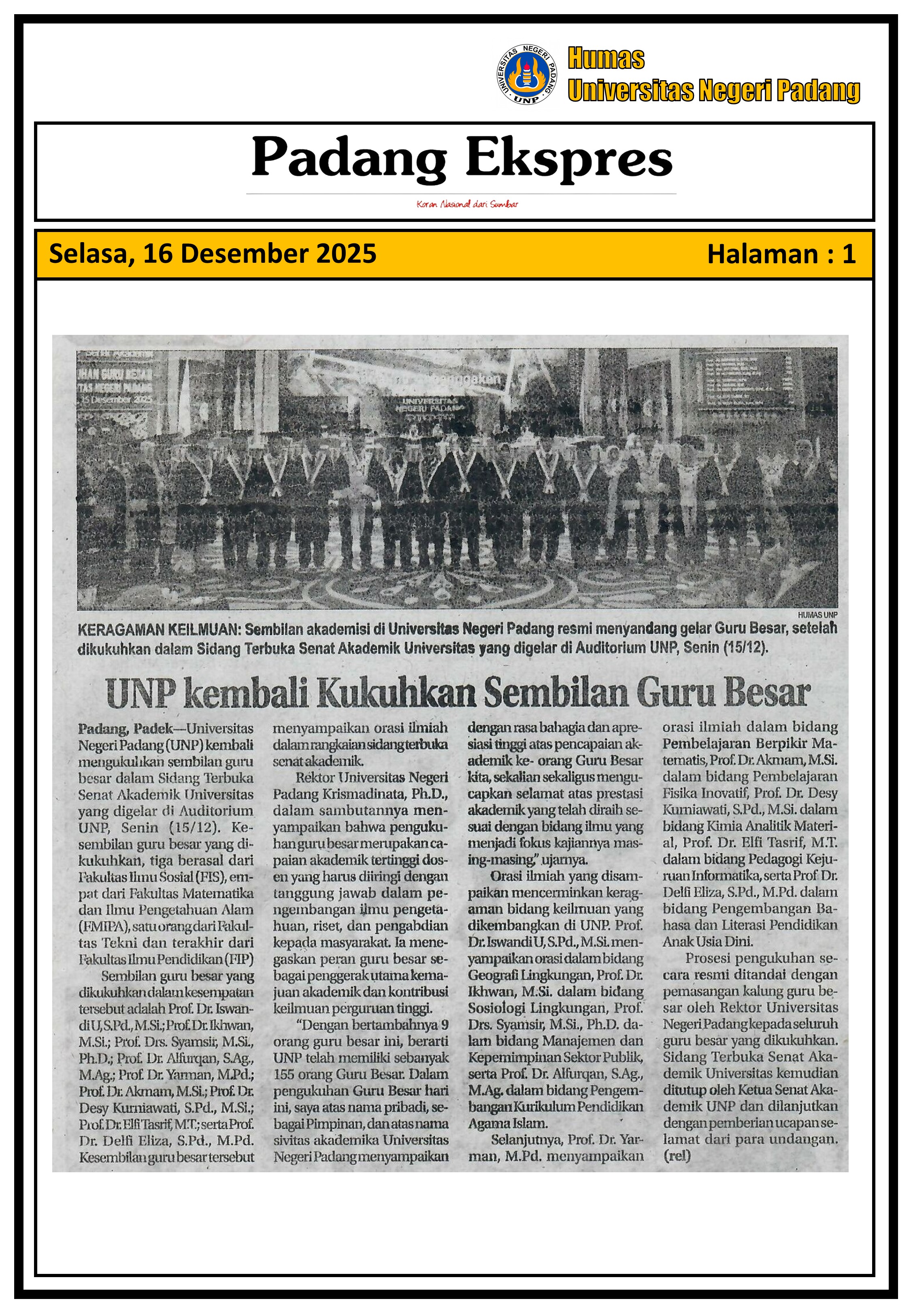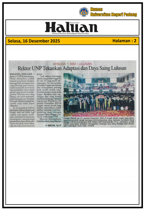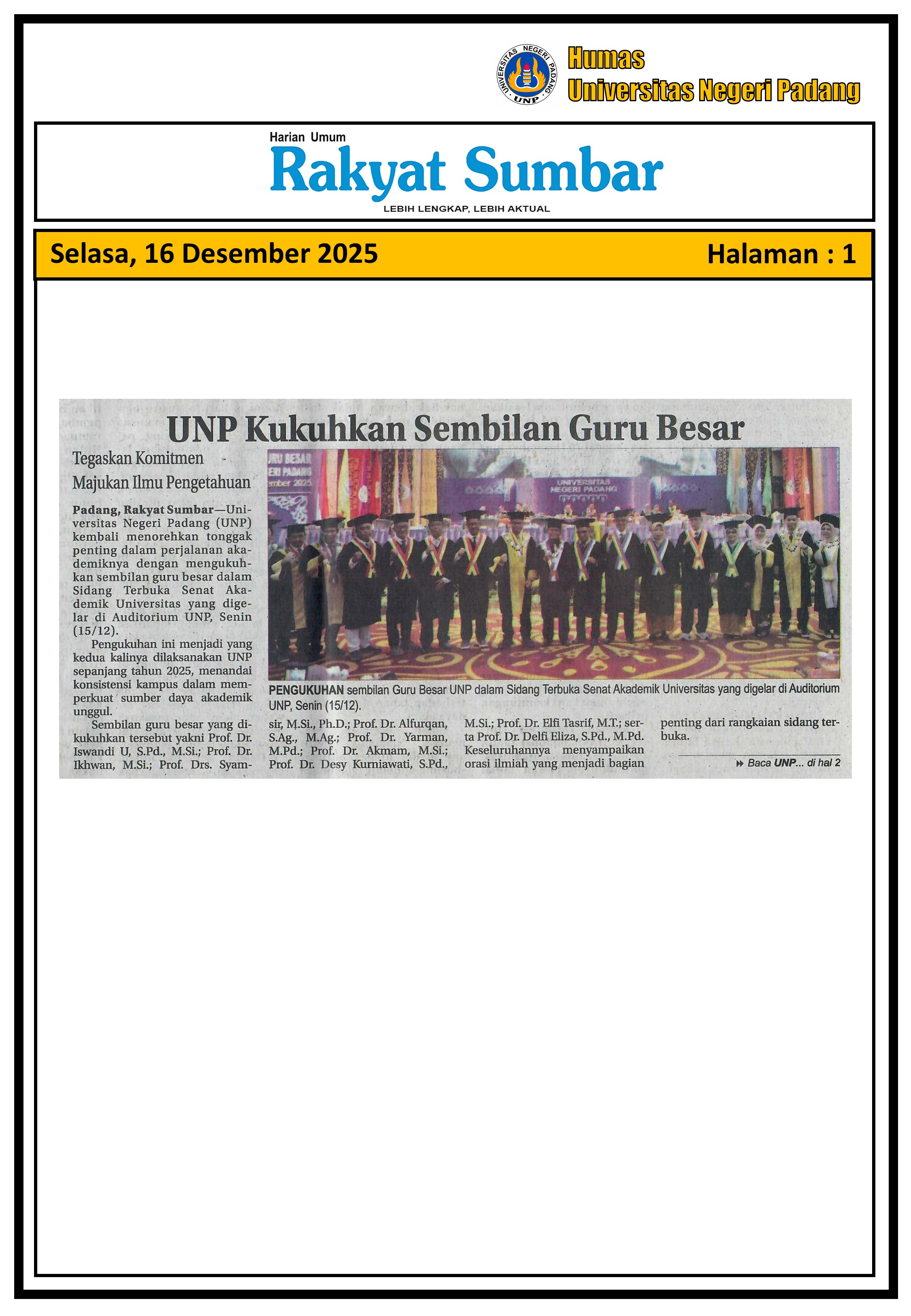 Rektor UNP Tekankan Adaptasi dan Daya Saing Lulusan (Haluan) Senin, 15 Desember 2025 | 00:00 WIB 2 weeks Albums