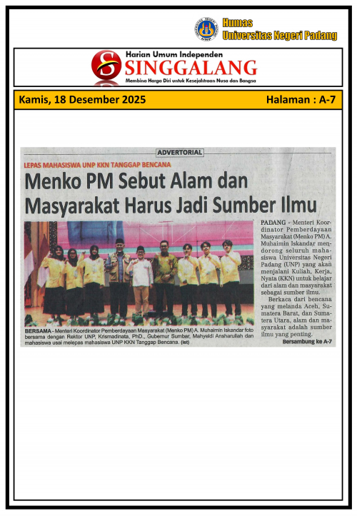 KKN di Tengah Bencana Punya Makna Strategis (Rakyat Sumbar) Kamis, 18 Desember 2025 | 00:00 WIB 2 weeks Albums