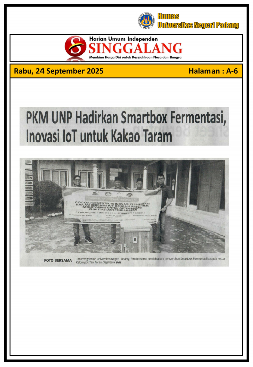 PKM UNP Hadirkan Smartbox Fermentasi, Inovasi IoT untuk Kakao Taram (Singglang) Rabu, 24 September 2025 | 00:00 WIB 1 month Albums