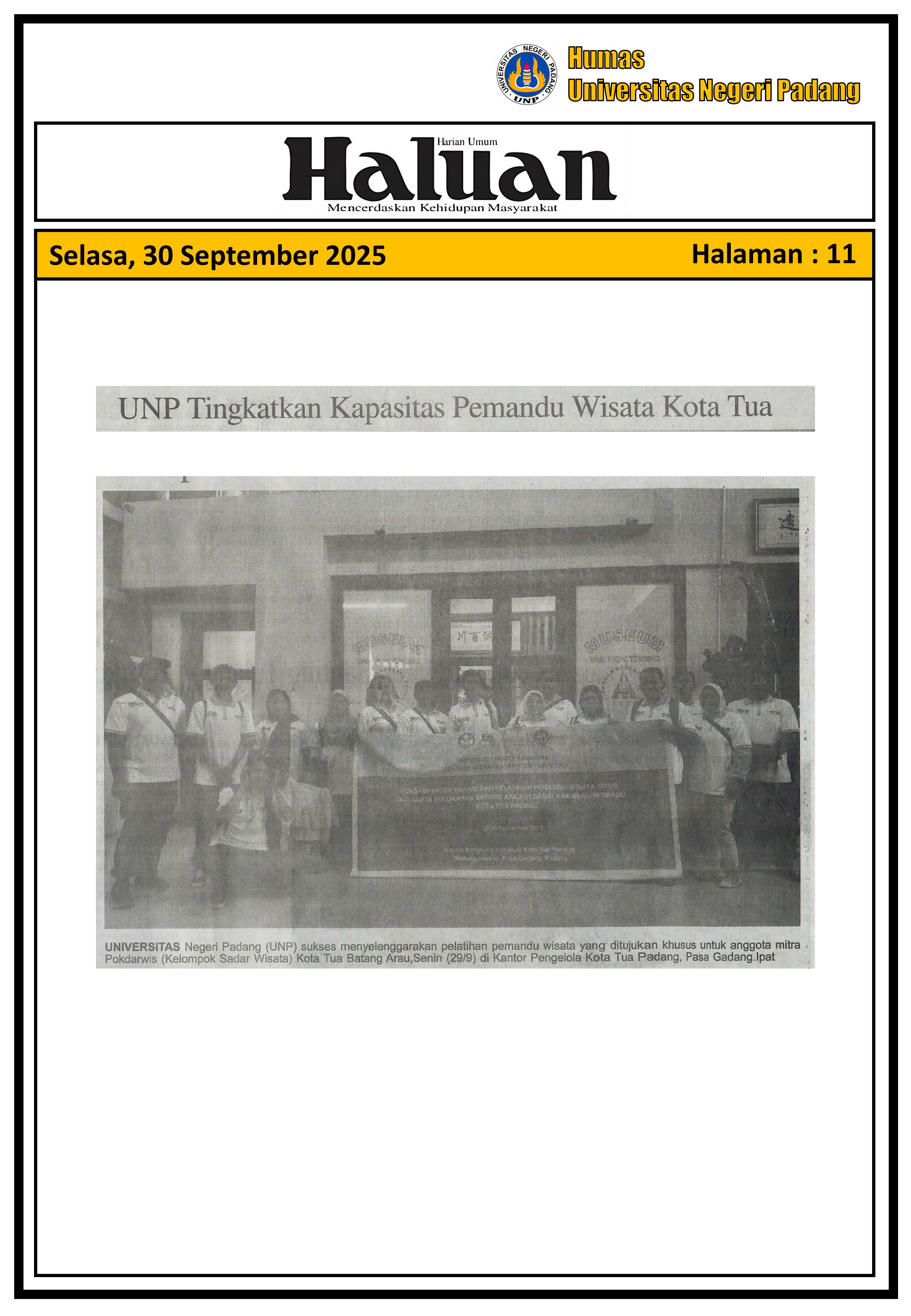 UNP Tingkatkan Kapasitas Pemandu Wisata Kota Tua (Haluan) Selasa, 30 September 2025 | 00:00 WIB 1 month Albums
