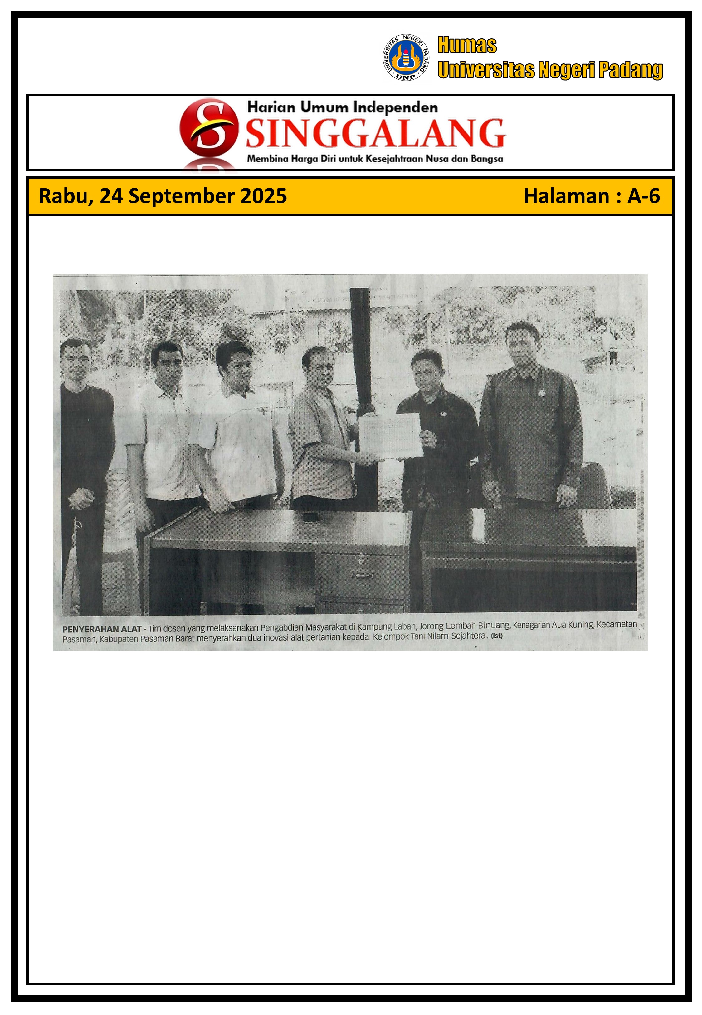 Dosen FT UNP Lahirkan Inovasi, Demi Tingkatkan Produktivitas Petani Nilam (Singglang)2 Sabtu, 27 September 2025 | 00:00 WIB 1 month Albums