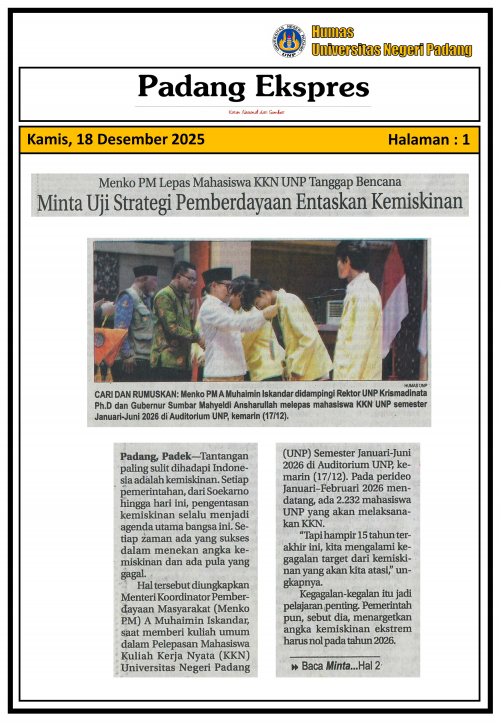 Menko PM Lepas Mahasiswa KKN UNP Tanggap Bencana (Padek) Senin, 10 November 2025 | 00:00 WIB 2 months Albums