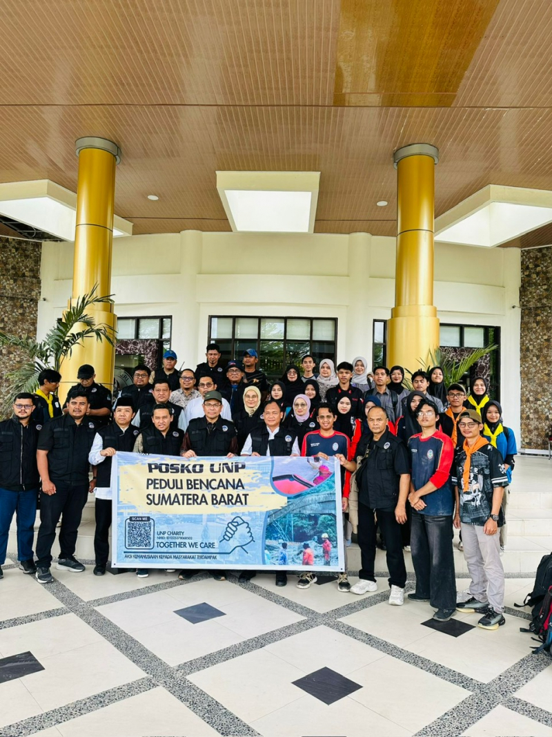 Padang - Universitas Negeri Padang (UNP) kembali mengerahkan dukungan untuk masyarakat terdampak bencana dengan mendirikan Posko UNP Peduli Bencana di luar Kota Padang yaitu di Tanjung Raya, Kabupaten Agam. Pelepasan tim relawan dipimpin langsung oleh Rektor UNP Krismadinata, Ph.D di Lobi Rektorat, Jumat (5/12/2025) sore sebelum tim diberangkatkan menuju lokasi.