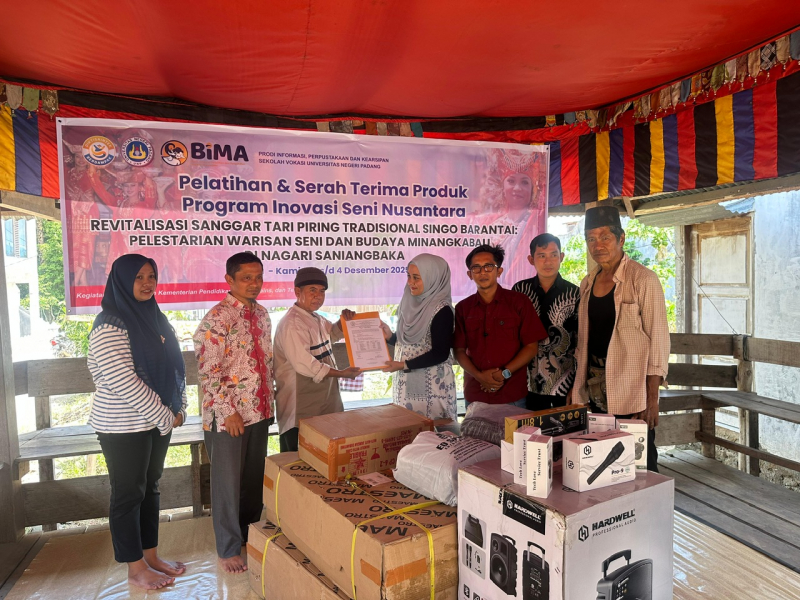 - Penyerahan produk inovasi seni: seragam tari, talempong, gendang, sound system, perangkat media promosi, lampu panggung, dan matras latihan