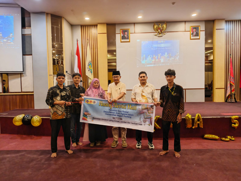 Padang — Universitas Negeri Padang melalui Departemen Ilmu Agama Islam (IAI) Fakultas Ilmu Sosial (FIS) meresmikan Ruang Revisi Hati, Jumat (17/4/2026), di Aula FIS UNP. Ruang Revisi Hati dihadirkan untuk membuka akses pendampingan bagi mahasiswa dalam menata hati serta memperoleh pengembangan diri dalam perspektif Islam dan nilai-nilai tasawuf dengan tagline mencetak ilmuwan yang ikhlas, cerdas, dan berhati luas.