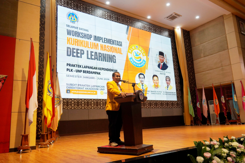 Padang — Universitas Negeri Padang (UNP) melalui Direktorat Akademik menggelar Workshop Implementasi Kurikulum Nasional Batch VII Deep Learning bagi mahasiswa yang akan mengikuti Program Latihan Kependidikan (PLK) Berdampak periode Januari–Juni 2026. Kegiatan ini diikuti oleh 658 mahasiswa dari 36 program studi di lingkungan UNP dan berlangsung di Auditorium UNP serta Aula Prof. Kamaludin, FEB UNP.
